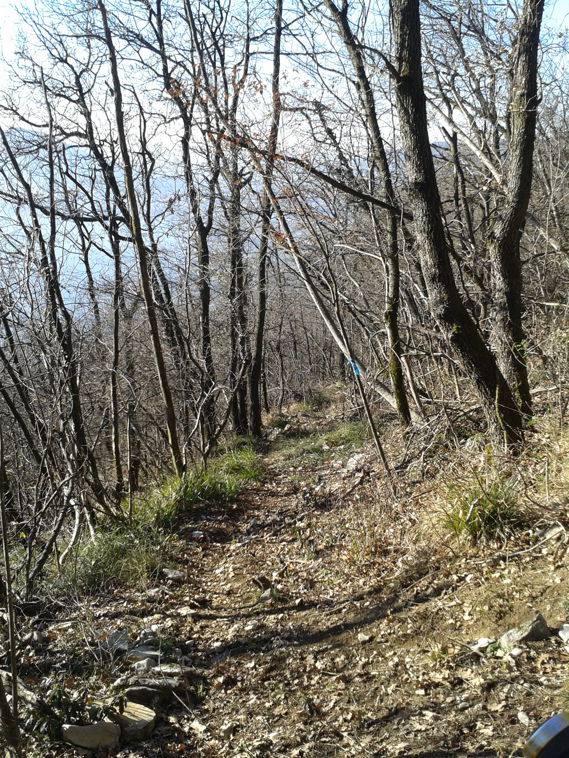 Passato il canalone secco all\'incrocio prendiamo il sentiero che scende marcato con la fettuccia blu ben visibile. Comincia la sezione BOAR\'S NEST
