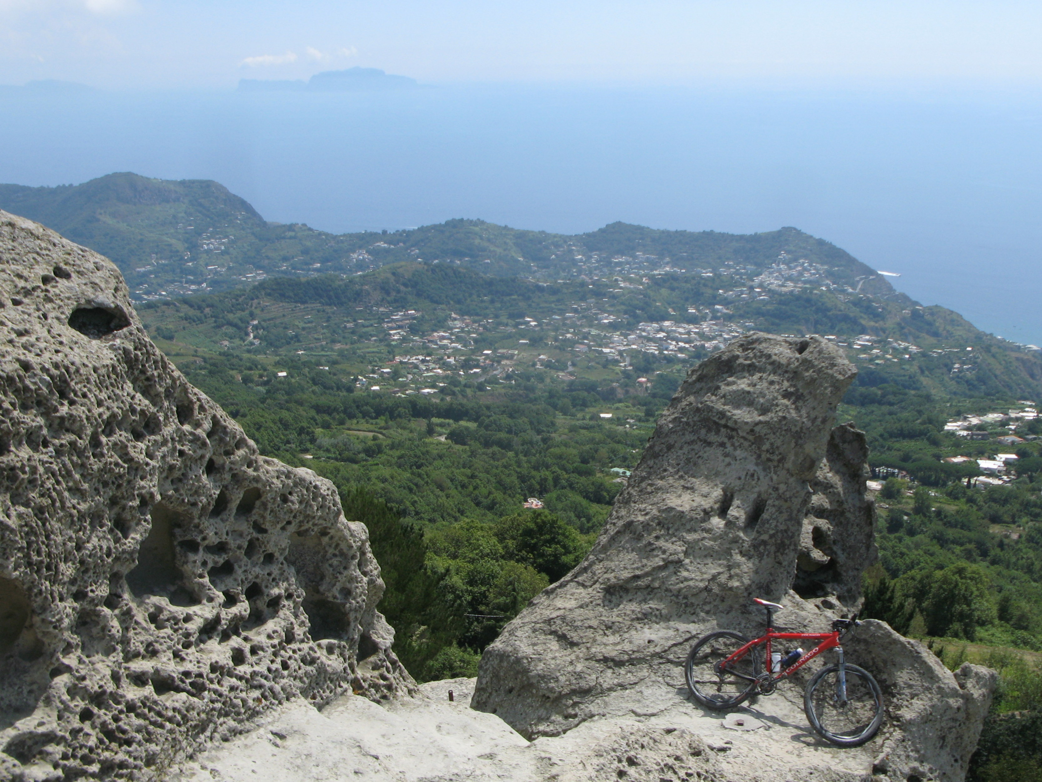 Dalla cima del Monte con la bici e l\'isola di Capri sullo sfondo