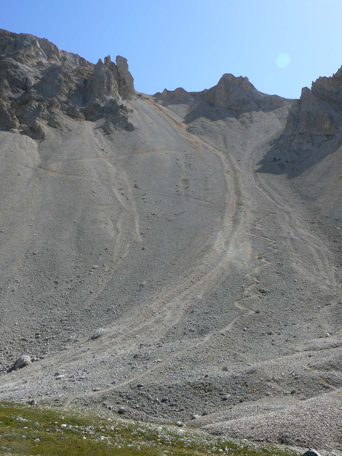 La traccia nel ghiaione appena disceso
