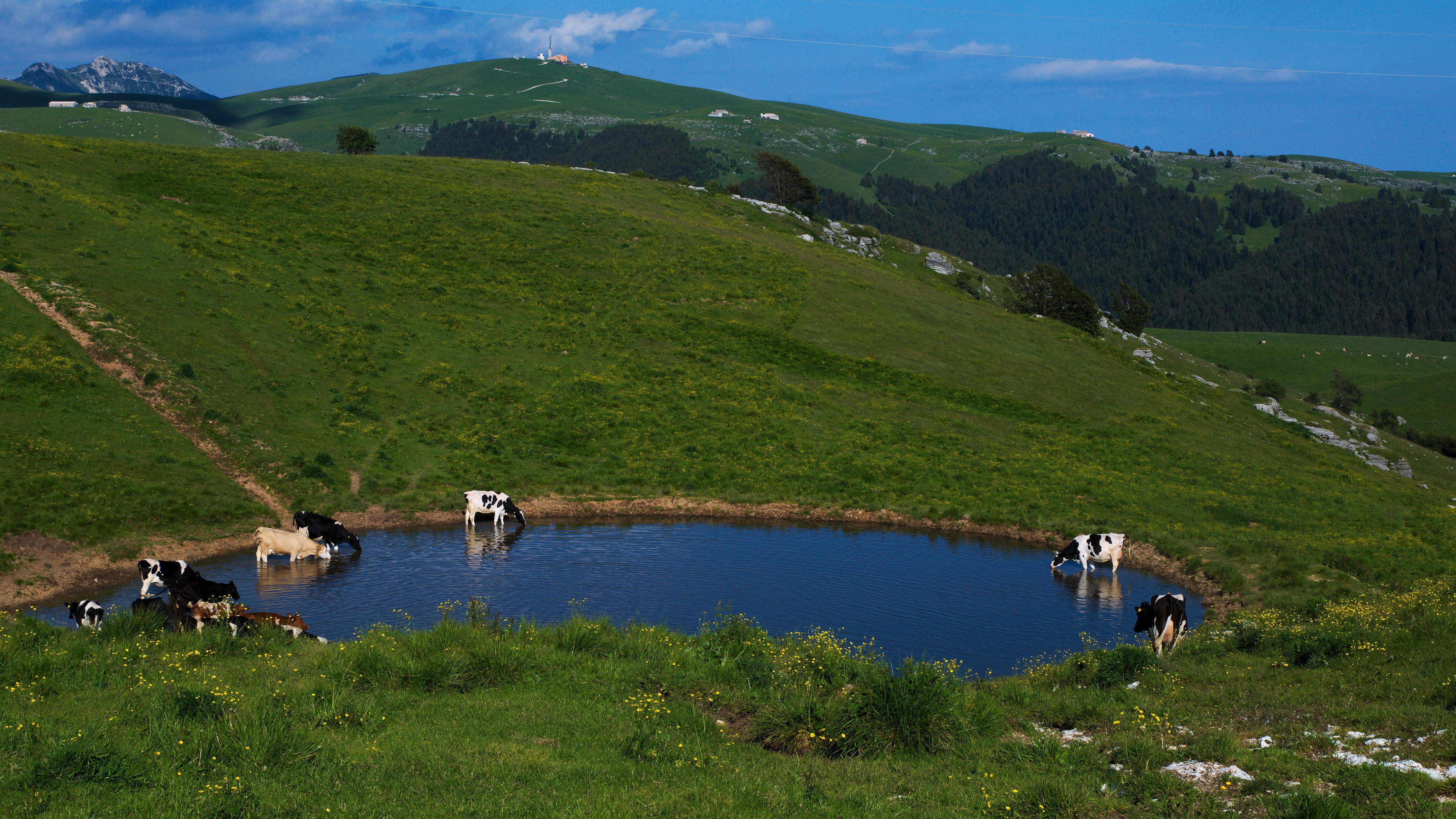 vista da malga lessinia, sullo sfondo rifugio primaneve